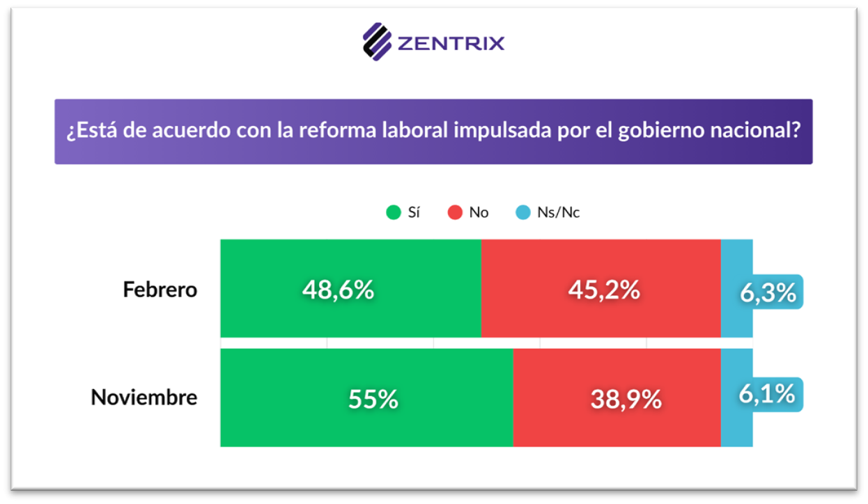 En ese marco, el respaldo mayoritario al paro puede interpretarse como la expresión de un malestar económico acumulado más que como una reacción puntual a una medida específica. La combinación de cierre de empresas, pérdida de empleo y deterioro de la actividad opera como telón de fondo para la discusión sobre la reforma laboral: cuando el mercado de trabajo se vuelve más frágil, crece la sensibilidad social frente a cambios normativos que afectan reglas de contratación, costos laborales y condiciones de estabilidad. Por eso, más allá del encuadre sindical, el apoyo al paro aparece vinculado a una lectura social de deterioro y a la percepción de riesgo sobre el futuro inmediato del empleo.